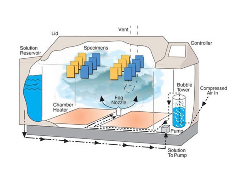 - Tuzlu çözeltinin püskürtüldüğü, sıcaklık ve nemin kontrol edildiği özel bir kabin.