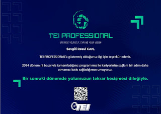 Sertifika Bilgileri: TEI Professional Katılım Sertifikası